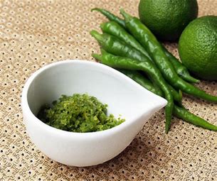 Yuzu pepper is a seasoning made by finely chopping the peels of chili peppers and yuzu peppers and mashing them with salt.