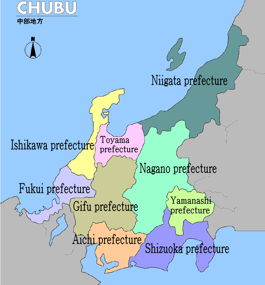 The map of the Chubu region is as follows.