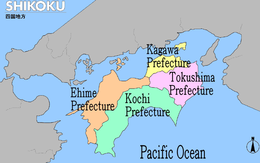 The map of Shikoku is as follows.